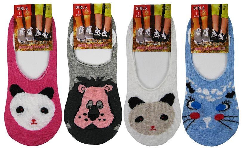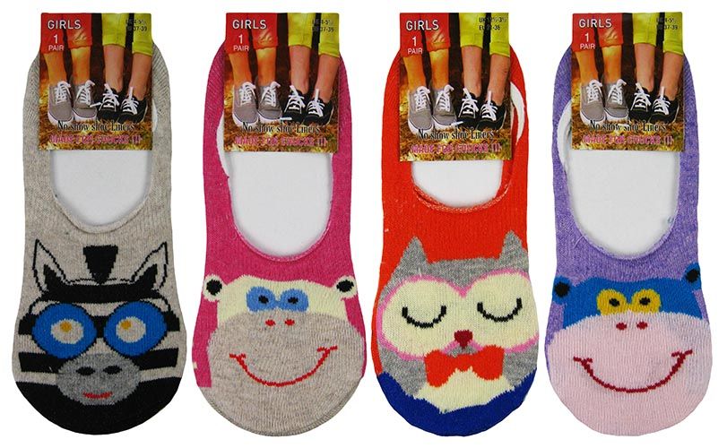 4 Pairs Children’s Animal Design Invisible Trainer Liner Socks Size 9-12 – 4-6